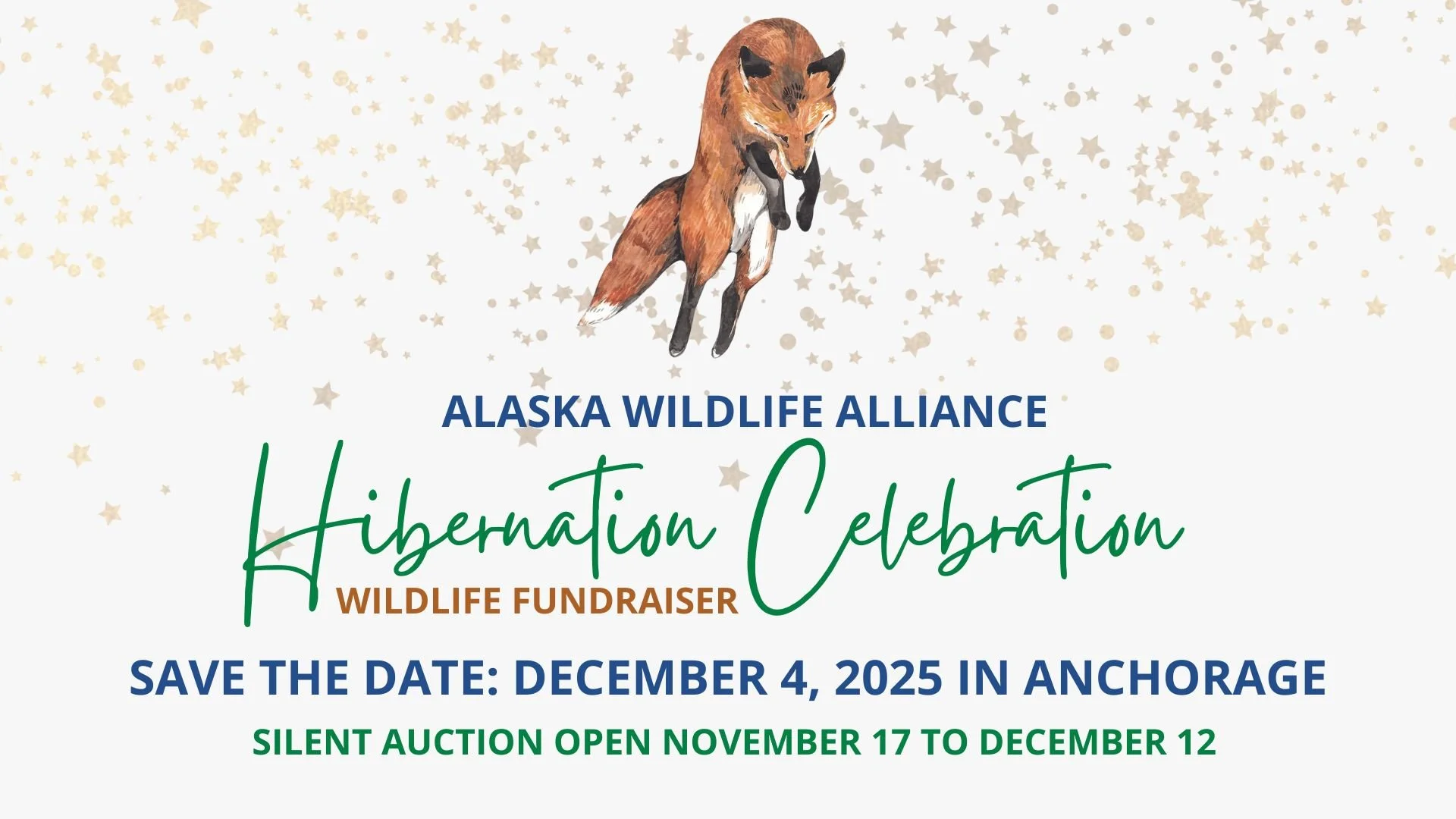 Whales can't tell us about the changing oceans, moose don't understand crosswalks, and bears are definitely not welcome at town hall meetings. Founded in 1978, the Alaska Wildlife Alliance gives a local voice to Alaska’s wildlife by advocating for healthy ecosystems across the state. Every year, we host a Hibernation Celebration fundraiser to build support for our wildlife conservation programs across the state, in conjunction with a silent auction! Join us for a presentation on our 2025 work, meet the faces behind AWA, and participate in a live silent auction.